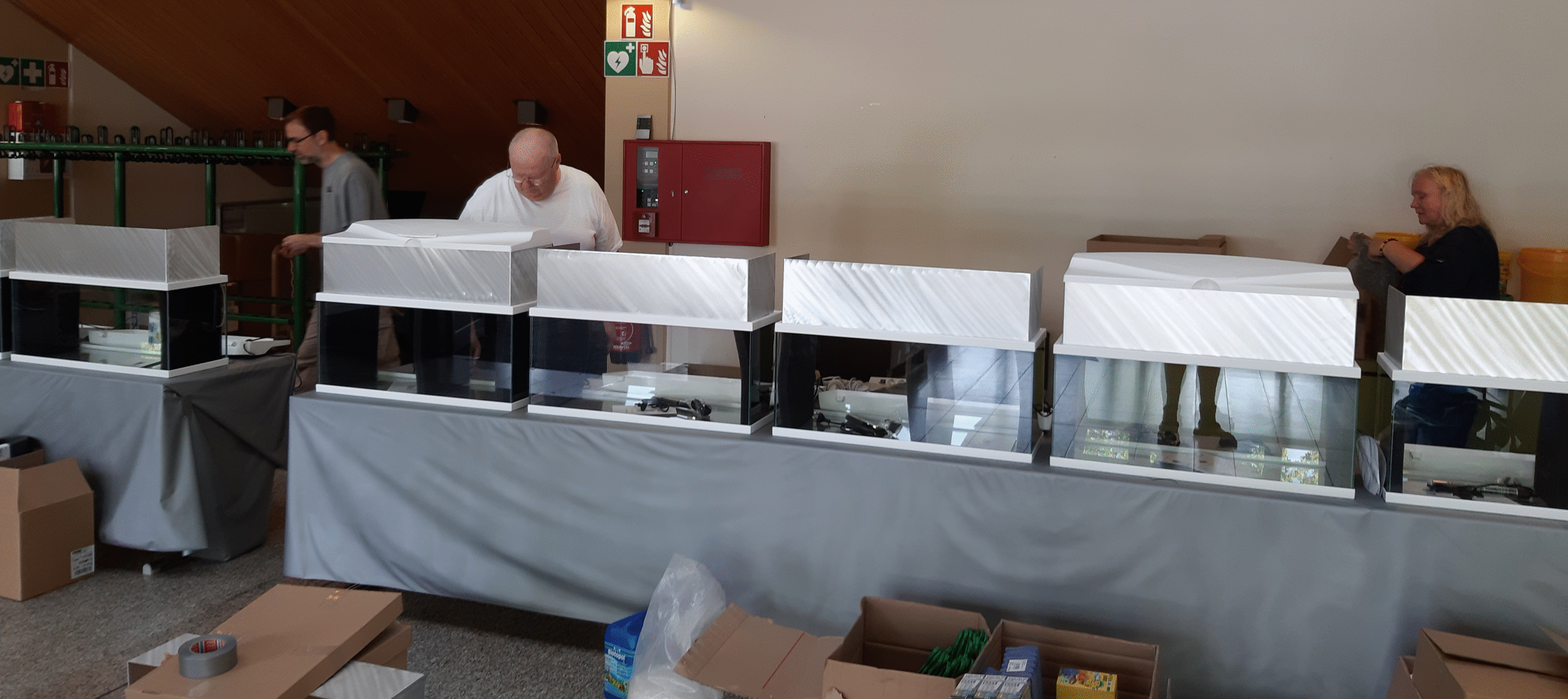 sorgten dafür, dass Tische, Aquarien und Technik aufgebaut, Beschilderungen angebracht und die